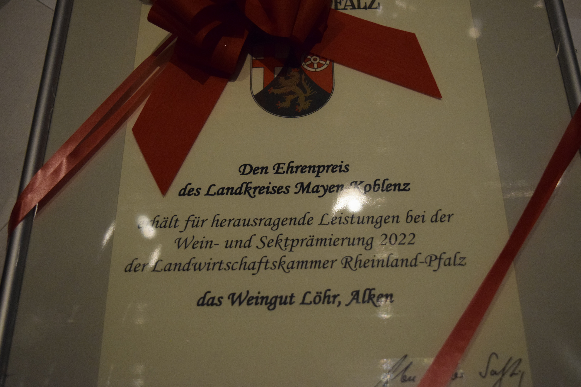 in der Qualität unserer Weine der Ehrnpreis des Landkreises Mayen-Koblenz verliehen.